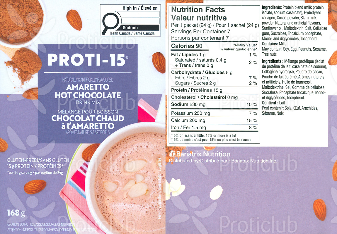 INGRÉDIENTS : Mélange protéique (isolat de protéine de lait, caséinate de sodium), collagène hydrolysé, poudre de cacao, poudre de lait écrémé, arômes naturels et artificiels, huile de tournesol, maltodextrine, sel, gomme de cellulose, sucralose, phosphate tricalcique, mono et diglycérides, tocophérol.
